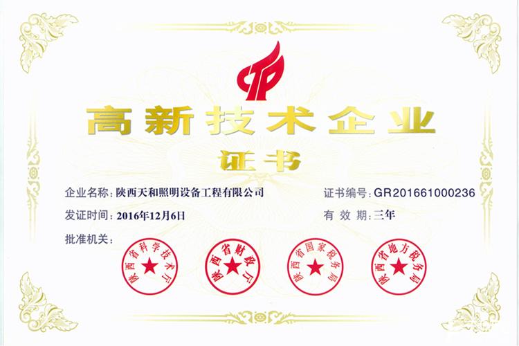 2017年1月18日,陜西省科學(xué)技術(shù)廳發(fā)布《關(guān)于公布陜西省2016年高新技術(shù)企業(yè)名單的通知》,陜西天和照明設(shè)備工程有限公司被認(rèn)定為陜西省2016年高新技術(shù)企業(yè),并頒發(fā)證書。公司自2000年成立以來,始終專注照明事業(yè),致力…